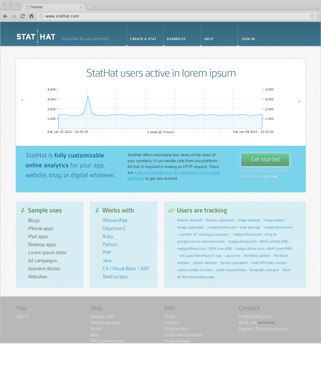The homepage pulled unique stats from the customer base and highlighted them.